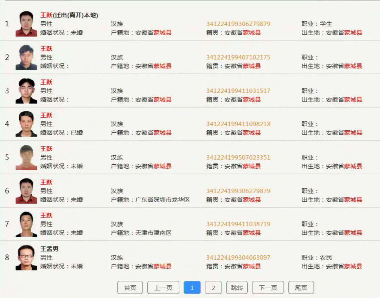 查询条件:提供名字,年龄,性别,出生地