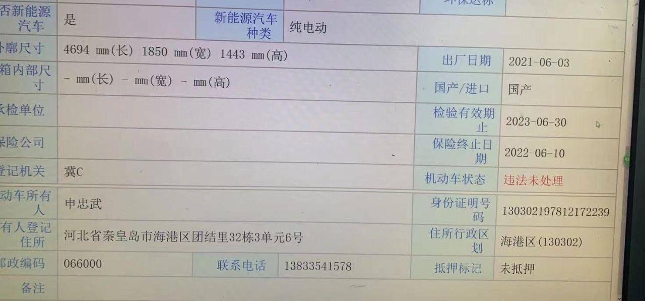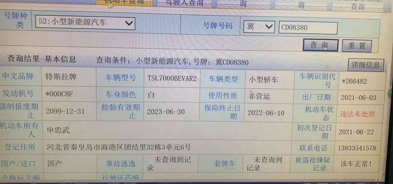 查询条件:提供身份证号或车牌号