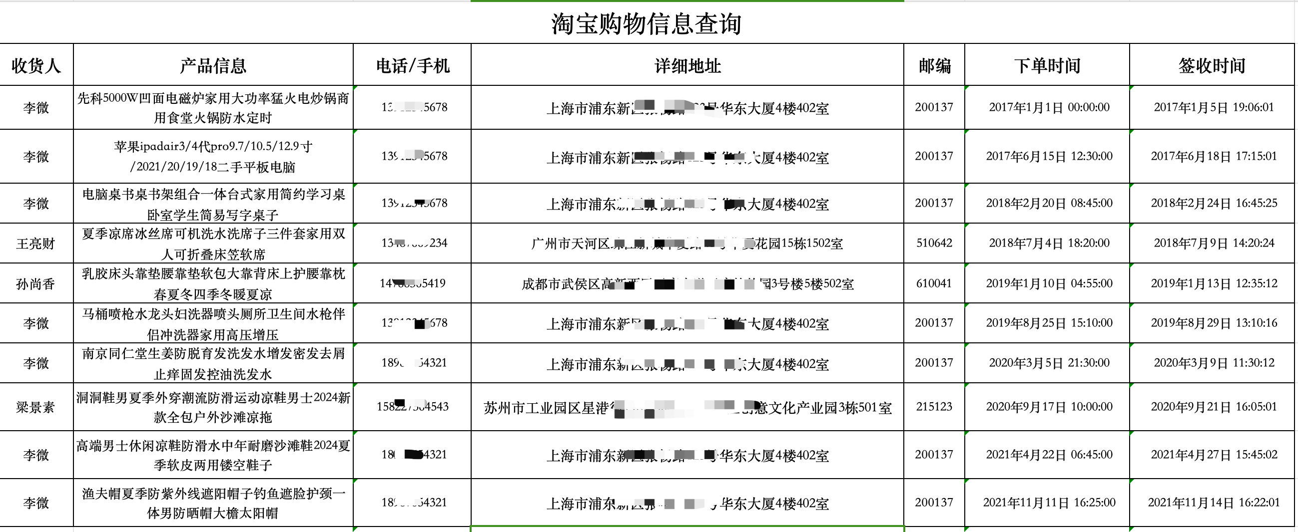 查询条件:提供手机号码或淘宝账号